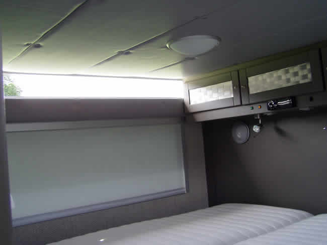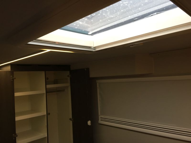 Ringsum 3fach verglaste Fenster, verspiegelt und Heki über dem Bett.
