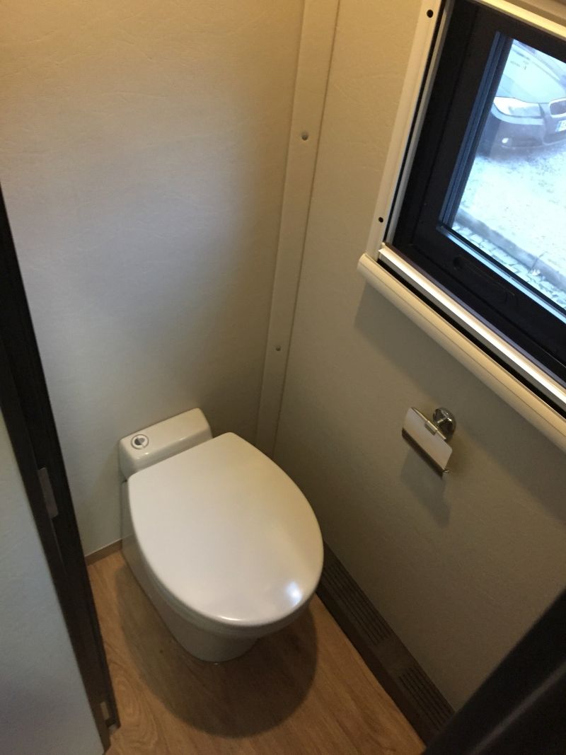 Toilette mit Anschluss an den Fäkalientank.