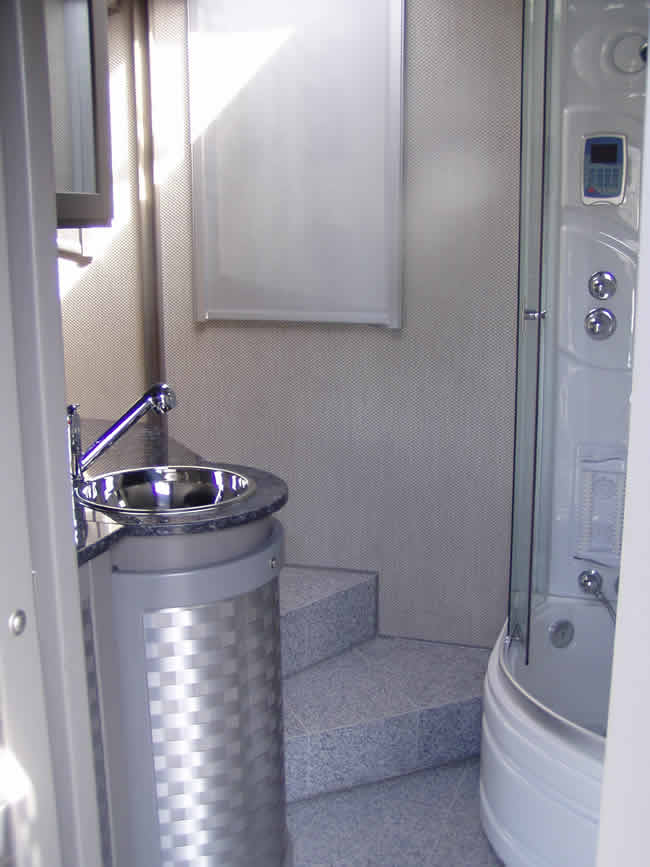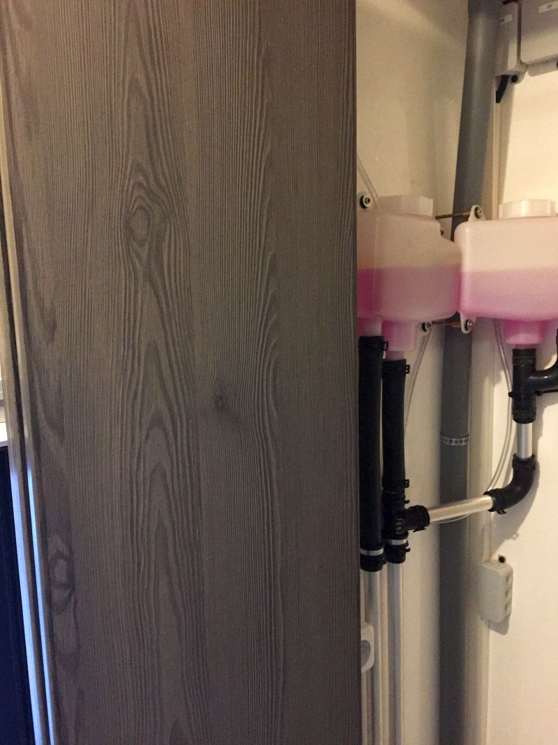 Hydraulik-Pumpe für Stützen und Slide-out, Gastankbefüllung, Tanks mit el. Entlerungs-Ventil und Durchspülung