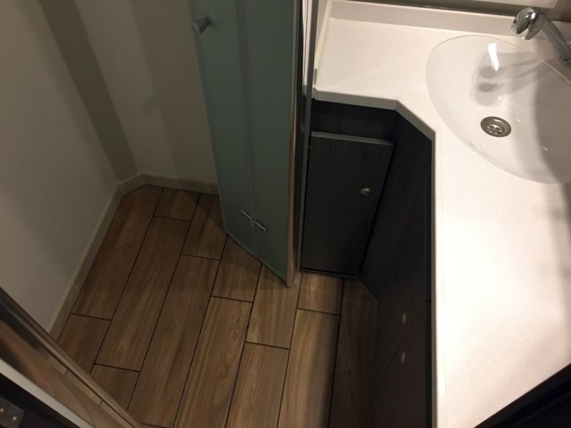 Wasch und Duschraum ohne Kante am Boden.