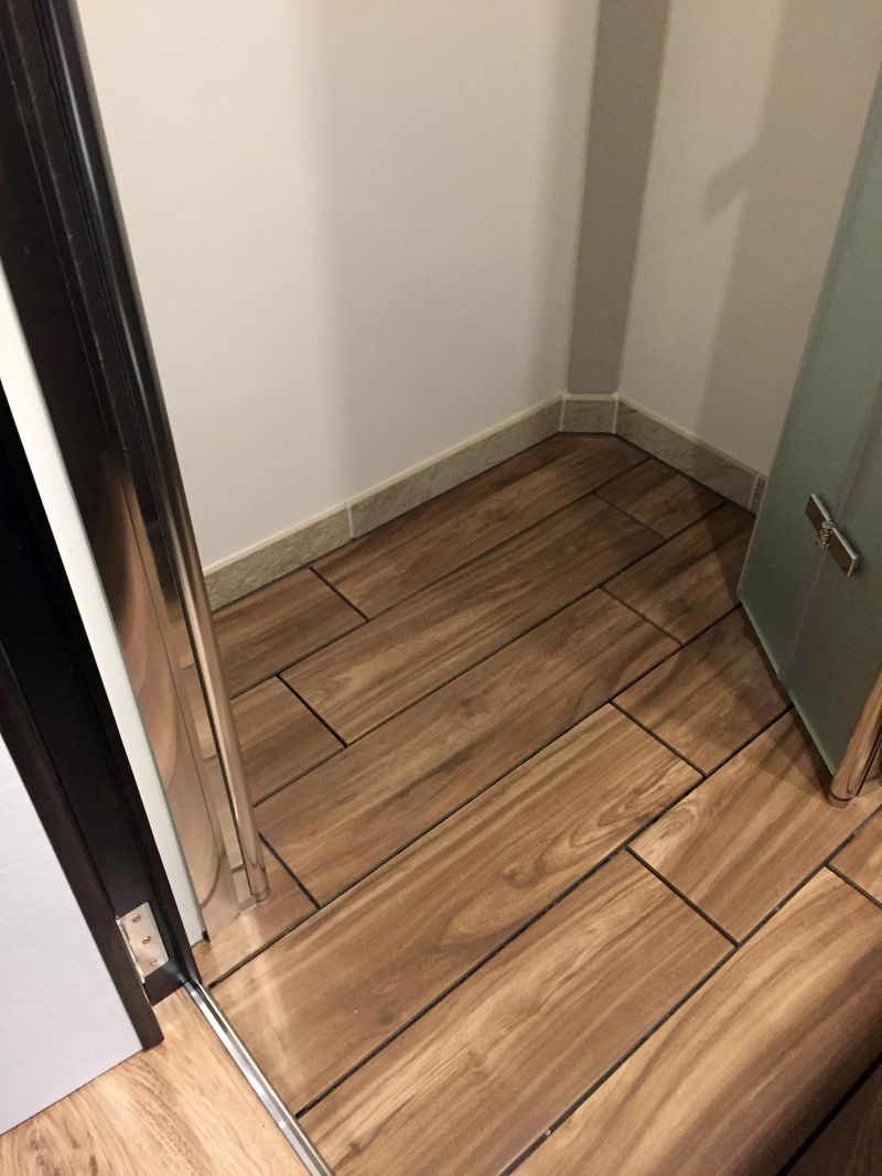 Das separiert den Raum zur großen Dusche. Der Ablauf ist zwischen den Fliesen im Boden über den ganzen Raum.