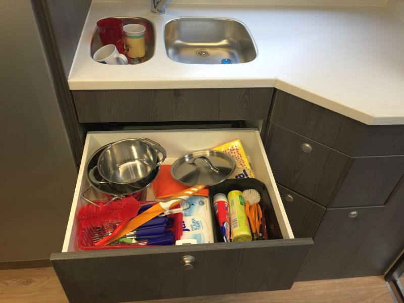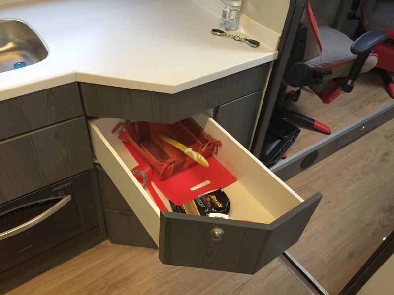 Ganz rechts in dieser Einheit ausziehbare Treppe für den Dachslide mit Staufächern.