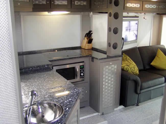 Alle Küchen und Ablageflächen mit Stein.