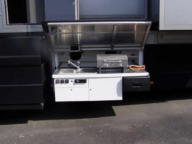 Ausziehbare Außenküche mit allem drum und dran.