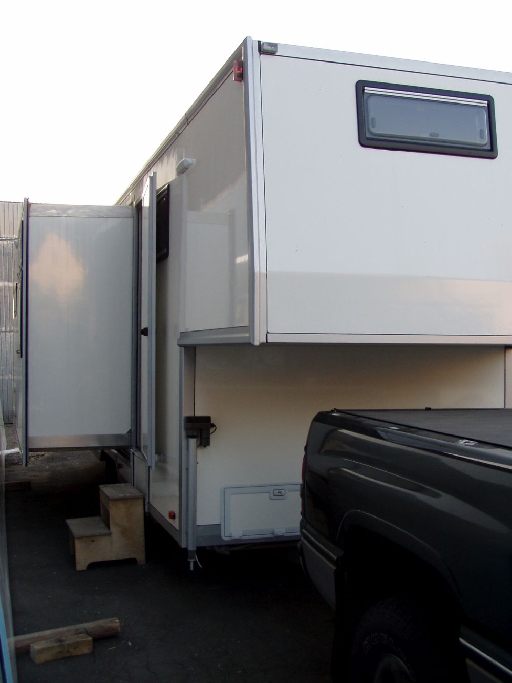 Sehr schön zu sehen sind die elektrischen Stützen. In diesem Fall über Fernbedienung zu steuern.