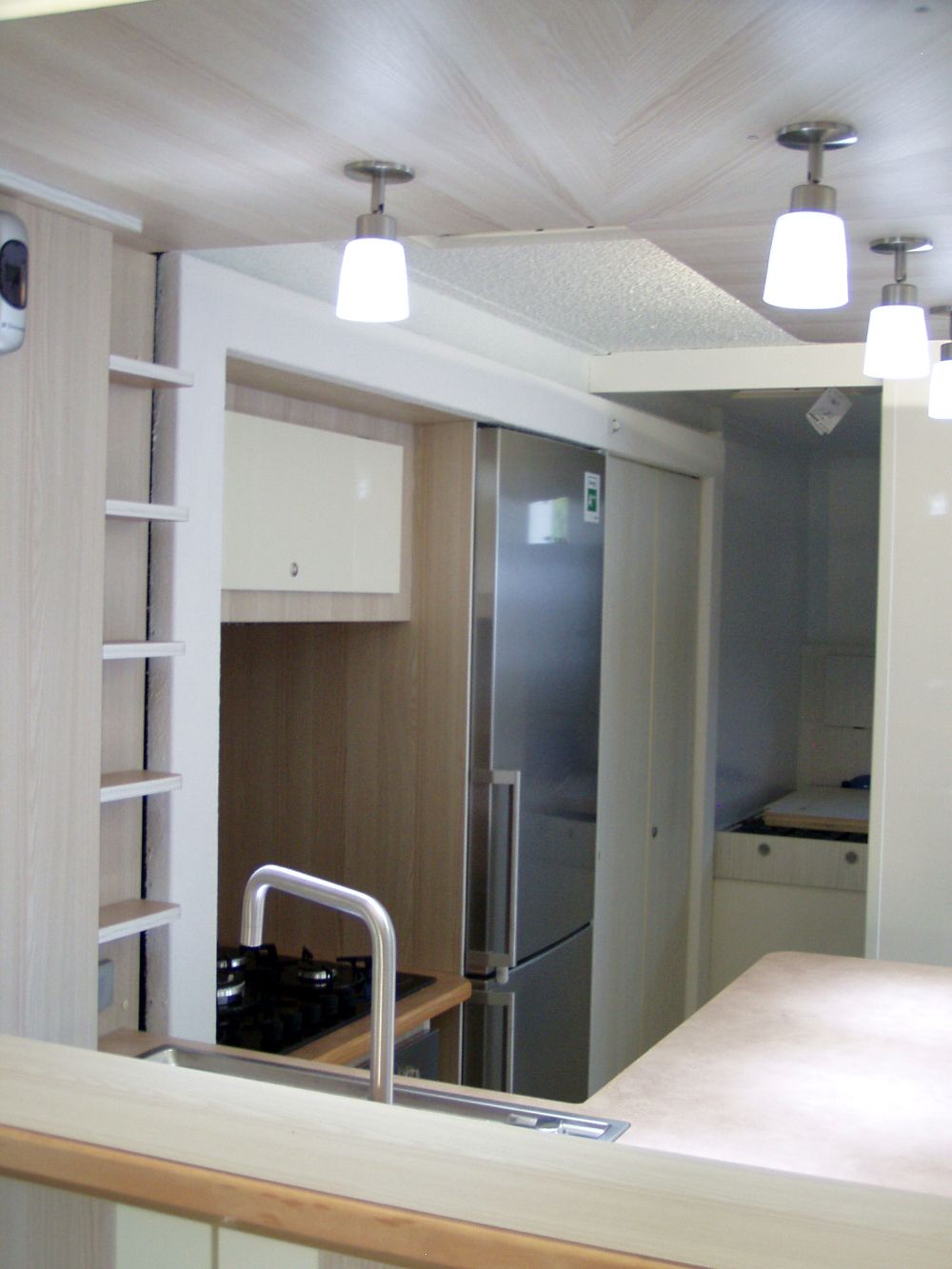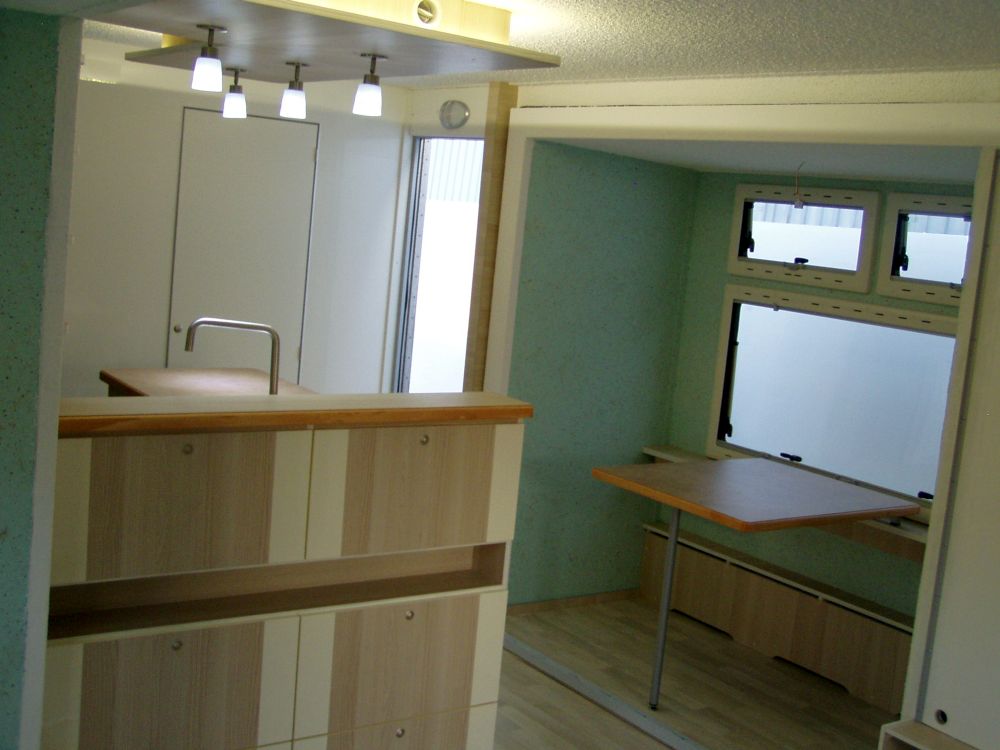 Der Durchgang zu Bett und Bad, hier mit eingefahrenem Slide, gut zu passieren.