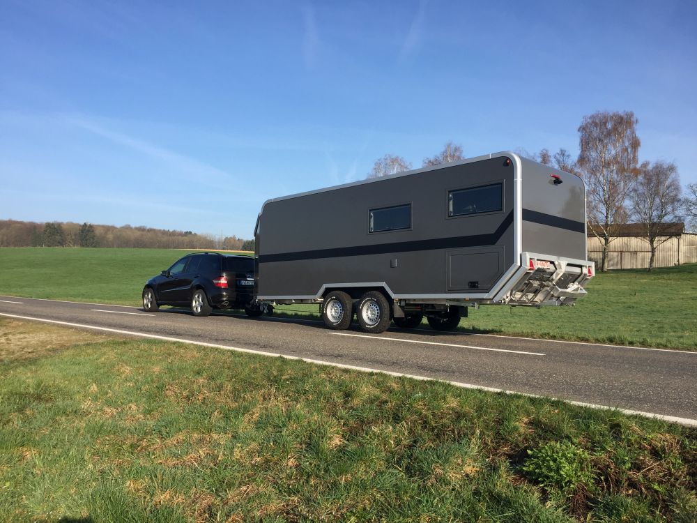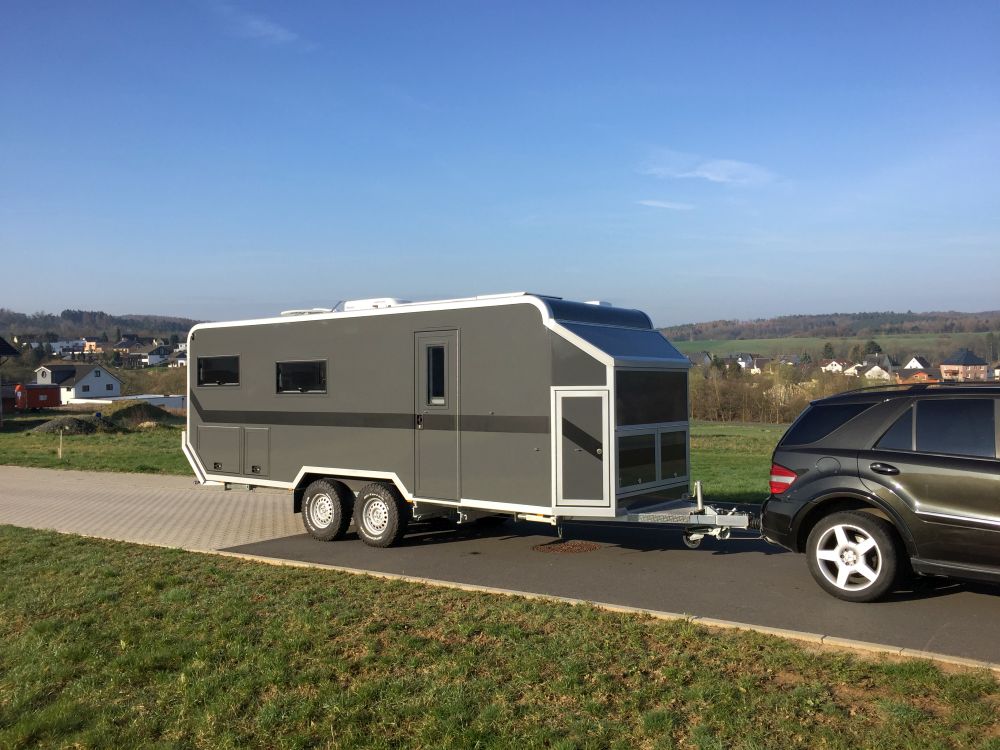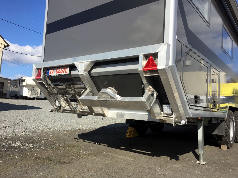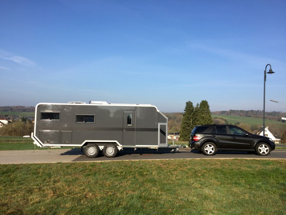 Hier steht er nun in voller Pracht mit 4 Hydraulik-Stützen vom Reisemobil ausgerichtet.