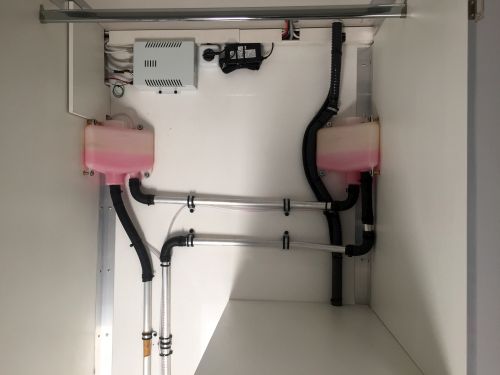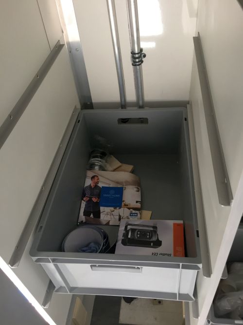 Ganz unten der Gasanschluss für die eingeschobene Küche,