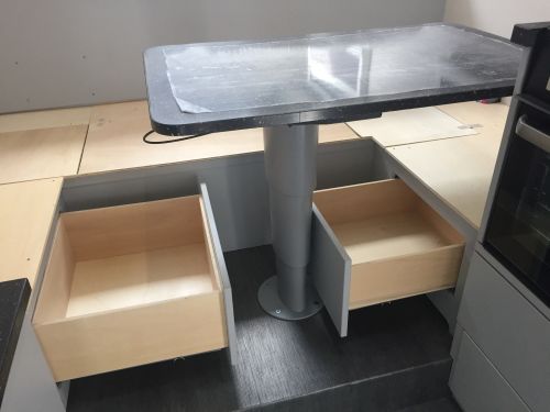 Der 80 cm ausgefahrene Slide bringt die Seitensitzgruppe aus dem Raum.