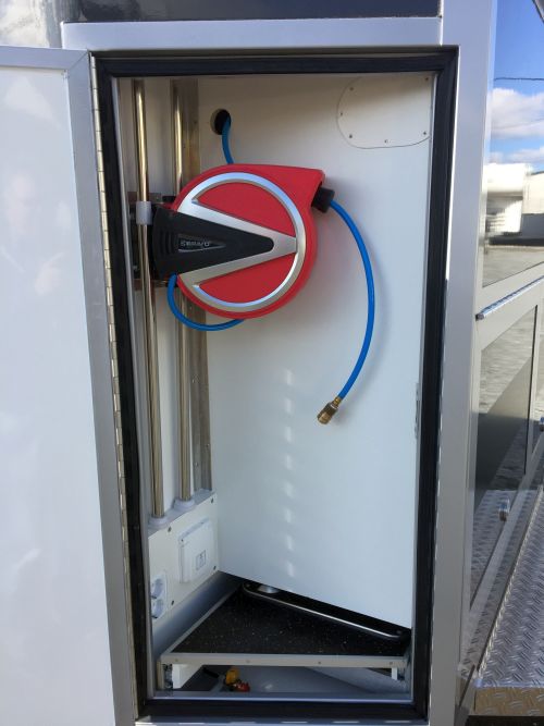 Der eingebaute Kompressor gibt hier seine Luft an eine Schlauchtrommel.